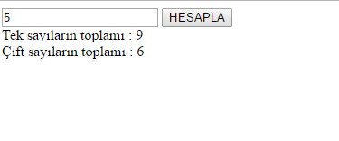 JavaScript ile Fonksiyon kullanarak text kutusuna kullanıcının girdiği sayıya kadar olan sayılardan tek ve çift olan sayıların toplamını...