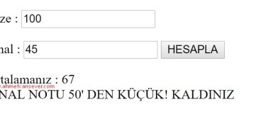 JavaScript Vize-Final Ortalaması ve Geçti-Kaldı Örneği