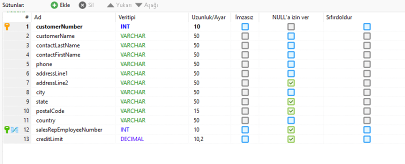 Örneğin, customers tablosundaki state sütununda NULL değerler bulunur.