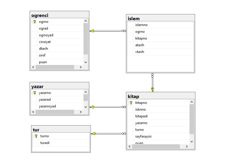 Örneğimizde kullanacağımız veritabanımız kutuphane veritabanıdır. Veritabanımızın yapısı: