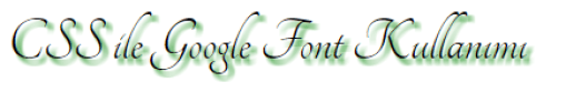 1 2 3 4 5 6 7 8 9 10 11 12 13 14 15 16 17 | <!DOCTYPE html> <html> <head> <link href="https://fonts.googleapis.com/css?family=Tangerine" rel="stylesheet"> <style> div { font-family : 'Tangerine' , serif ; font-size : 48px ; } </style> </head> <body> <div> CSS ile Google Font Kullanımı </ div> </body> </html> |